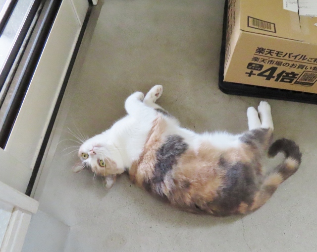 ツバメの監視活動を、寝転がりながらおこなっているきなこです。